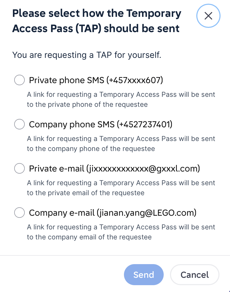 The link should have requested for you by a LEGO colleague. Open the link, and your temporary access pass will be sent in a follow-up message.